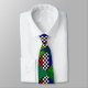 Blue to green rainbow tie with vertical red white and blue on back checker background cutouts.