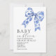 Plain white envelopes are included with paper invitations and will come to fit the invitation size you select. If you don’t need the envelopes, you may choose to not receive them by selecting the dropdown below "Envelopes" and choosing "None." If you’d like to have a design on your envelopes, you can browse all of these available envelopes to find the design that complements your Blue Toile Bow Baby Shower Invitation.
