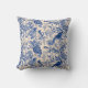 Blue Toile de Jouy Flowers and Pheasants Throw Pillow
