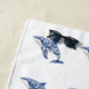 This coastal inspired blue and white beach towel features floral toile dolphins and can be personalized with your choice of name or special text.