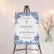 Welcome guests to your child’s baptism with this elegant blue toile flower foam board sign. Featuring a blue cross dove, classic toile design, with blue florals, this sign is a timeless addition to your celebration. Printed on durable foam board, it arrives ready to display—no framing needed. Perfect for greeting guests at the church, reception, or home gathering. Personalize with your child’s name, baptism date, and custom message.