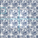 A traditional blue and white toile pattern depicting graceful flowering branches with intricate blossoms and leaves, rendered in a fine vintage engraving style.