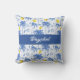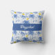 Blue Toile Palm Trees Lemons Monogram Name Throw Pillow