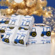 Birthday present gift wrap tractor design. You can customise this birthday present wrapping paper with any text of your choice. Should you require any help with customising then contact us through the link on this page. Blue tractor design personalised birthday present gift wrap