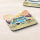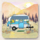 A Blue Trailer by the forest at sunset brings camping memories to life on these hard plastic cork backed coasters. Give them as gifts to your RV buddies and bring a smile!