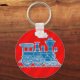 Blue train on red boys keychain