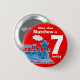 Birthday blue train on red badge / button customise with the age and name of your choice for that extra special touch. This example reads "Matthew".