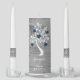 Personalize special candles for your wedding ceremony with a set of Blue Tree of Hearts Wedding Unity Candle Set. Candle design features a gray wooden background adorned with a tree with blooming hearts on its branches. Personalize with the groom and bride's names along with the wedding date, and taper candles with surnames. Additional wedding stationery and gifts available with this design as well.