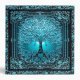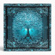 A beautiful ornate design with a blue tree of life with an ornate frame and a heart at the roots.