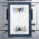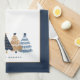 Christmas kitchen towel with modern simple blue Christmas trees and navy blue edges. Easily personalize the text - Kate Eden Art