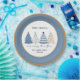 Christmas party paper plates with modern simple blue and ''golden'' Christmas trees on the background with the same colours, for family or company party. Easily personalize the text or leave some of it blank - Kate Eden Art