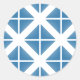 Blue Trendy Triangle Pattern Classic Round Sticker