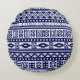 Blue Tribal Geometric Pattern Round Pillow