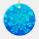 Ocean blue turtle design inspired by tribal Polynesian tattoos. Ocean blue background of blue Hawaiian Honu sea turtles and hibiscus flowers.