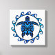 Ocean blue turtle design inspired by tribal Polynesian tattoos in the center of a Maori Sun symbol.