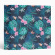 Blue Tropical Flower Garden Pattern 3 Ring Binder