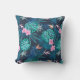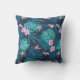 Blue Tropical Flower Garden Pattern Throw Pillow
