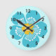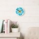 Blue Tropical Flower Round Clock