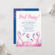 Blue Tropical Pink Flamingo 18th Pool Birthday Invitation