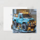 Blue truck cake with big chunky tires, bright headlights and birthday candles. Great birthday card for any little boy.