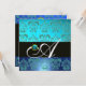 BLUE TURQUASE BLACK CHAMPAGNE DAMASK MONOGRAM INVITATION