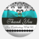 BLUE TURQUASE & WHITE DAMASK RIBBON Aquamarine Classic Round Sticker