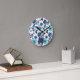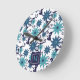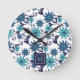 Blue Turquoise Flowers Monogram Round Clock