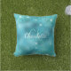 Blue turquoise glitter monogram outdoor pillow