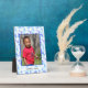 Have the this adorable blue and turquoise linked heart pattern border as the frame of your custom photo surrounded by a fine blue border. Replace the template photo with your favorite family (member) image for a custom design. Personalize the text or click customize to select a font style, size, and color you prefer. Placeholder photo is courtesy of website pixabay.com.