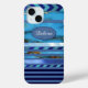 blue turquoise pattern of Stripes & Name Case-Mate iPhone Case