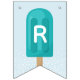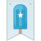 Designed to match our popsicle birthday party invitations, this cute summer bunting flag design features sixteen custom text fields to spell out your message (shown with "Happy Birthday"), with white lettering set on blue and turquoise teal popsicles. A light blue background dotted with white confetti completes the design.