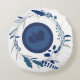 The colour palette leans into cool tones—navy, slate, steel blue, and muted indigo—making this round pillow suitable for modern interiors, relaxed bedrooms, or thoughtfully styled lounge areas. White negative space around the botanical wreath allows the design to breathe, preventing visual overload while keeping the focus on the central motif. This makes the pillow easy to pair with neutral sofas, pastel bedding, wooden furniture, or minimalist interiors.