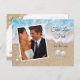 Your special engagement photo, vacation or summertime photo and the playful and fun saying, Two Less Fish in the Sea accents this wedding Save the Date Postcard on a background of aqua blue water, beach sand, seashells and starfish. The back of this Save the date Postcard is further decorated with more beach sand, seashells and starfish. If additional coordinating items are needed for your wedding just contact us at prettyfancyinvites@gmail.com with your request.