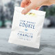 Modern "one smart cookie" typography design in blue and white, great personalized favor bags for graduation party.