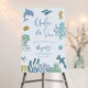 Under the sea theme baby shower welcome sign featuring illustration of ocean creatures.