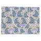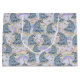 White unicorns with blue hair with rainbows and white flowers as a seamless repeat pattern design. The Unicorns are hand-drawn with colored pencils. Traditional art.