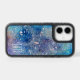 This pretty phone case features a blue, violet, and pink abstract universe. The pattern has tiny glittery silver star swirls which add sparkle and interest. Your monogram is in white at the bottom right corner.