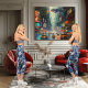 Bold and energetic graffiti-style pattern in shades of blue, white, and gray, inspired by urban walls and street rhythm. Perfect for modern fitness wear, street-inspired leggings, or artistic lifestyle fashion. Fully customizable with your own text or logo.