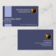 A dark blue cover is accentuated by a vertical light blue column stripe design at the left wall of the card ; This motif houses your prestigious name and job title. At the top right corner is a gold manpower logo you can use with its business name and contact details beside it. Towards the base is a slogan caption "Your Partner In Global Manpower Outsourcing", you can change the caption to suit your needs.
