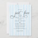 Blue vertical stripes Modern Script Heart Wedding Invitation