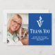 Custom blue veterinary school graduation thank you cards with the veterinarian medical caduceus next to your graduate photo. Customize these cards of thanks with chic white script next to your photograph for your animal clinic.
