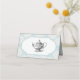 Celebrate a special person or couple with a traditional British high tea party. The background of the place card is a vintage blue paper image patterned with white rosettes. The frame with a vintage white paper center features a vintage illustration of an ornate teapot. Add your guest's name(s) and table or seat number. Versatile to use on your tables for a bridal or couple's shower, baby shower, birthday party, wedding brunch, or a special luncheon. Available in alternate colors with matching products.