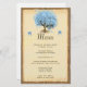 Blue Vintage Bird Heart Leaf Tree Wedding Menu