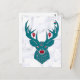 Blue Vintage Christmas Nordic Deer Elk Postcard . A beautiful Scandinavian deer on a white marble pattern background.