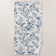 A detailed vintage floral illustration in blue tones, featuring delicately drawn branches, leaves, and blossoms on a light background, creating a classic and elegant botanical look. Toile-de-Jouy