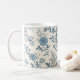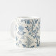 A detailed vintage floral illustration in blue tones, featuring delicately drawn branches, leaves, and blossoms on a light background, creating a classic and elegant botanical look. Toile-de-Jouy