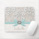 Vintage lace and linen fine burlap look design with a PRINTED aqua blue ribbon and bow, heart shaped diamond and rhinestone and pearl LOOK design. It can be personalized with your name on the subtle antique Victorian damask background. Created and designed by Chrissy H. Studios, LLC. All Rights Reserved.