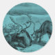 Blue Vintage Reindeer Illustration Classic Round Sticker