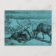This beautiful vintage find shows a fluffy reindeer sitting in the snow. Next to him another deer looks for food to graze on and behind them is a long line of even more deer. The illustration is in blue and black making it simple yet pleasing to the eyes.