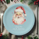 Blue Vintage Retro Santa Claus Christmas Paper Plates